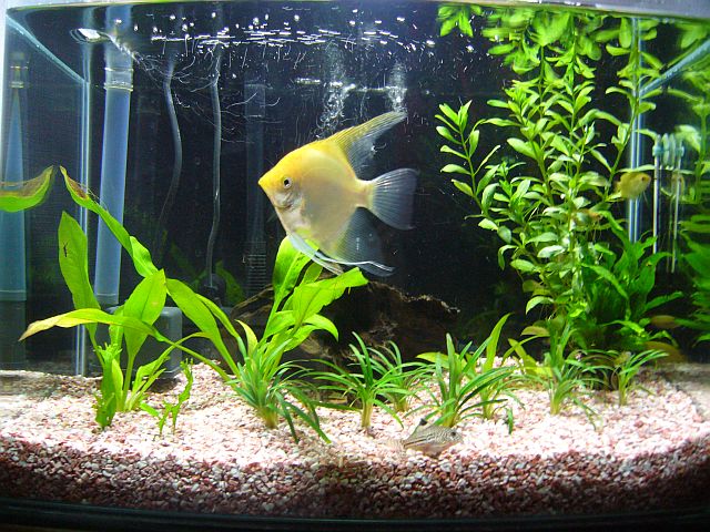 さて、GWに入り近所のペットショップで水草をセールしていたのでアマゾンソードとピグミーサジタリア(?)を買ってきた。あれ、こんなに大きい葉っぱなのね、と思うくらいもともとのアマゾンは弱っていたのである。水草が増えるとエンゼル以外の魚は隠れ家で増えて活き活きとしてくる。