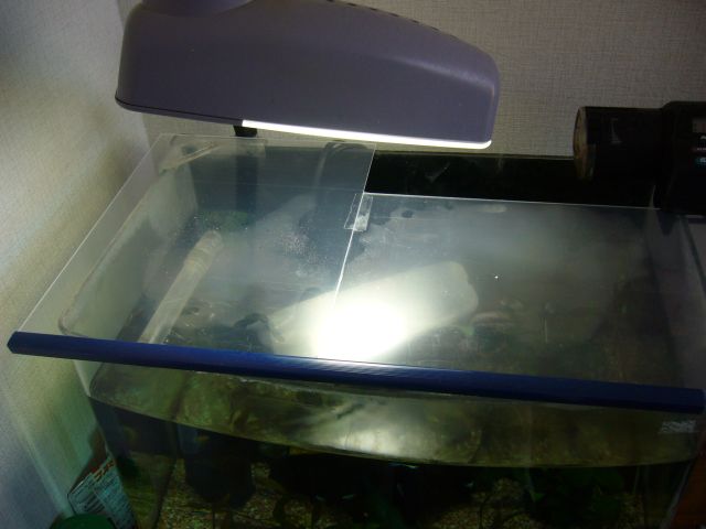 後は水槽が大きくなり、ガラスの厚みが1mmほど厚くなっていたのである。ガラス蓋を買ってきたが抑えるものがないので100円ショップのコードを支えておくものをひんまげて作ってみた。すると45cm水槽用のガラス蓋は実は42mmほどしかないことを置こうとして気がついたのである。今まで飛び出したことはないのでしばらく考えよう。