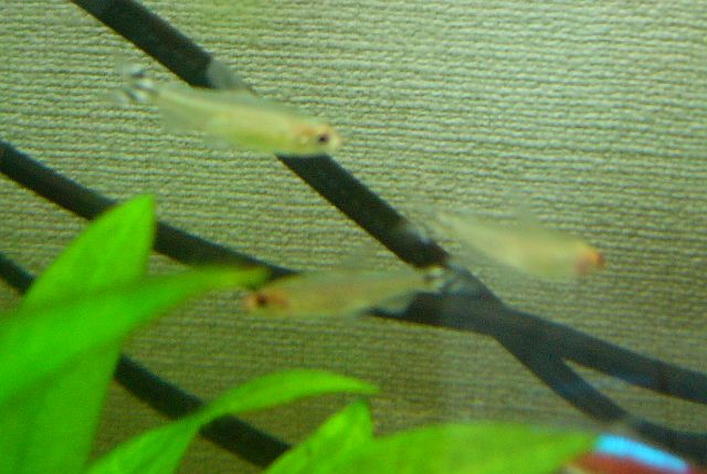 当初2匹を買ったのだが店員が救っているときに一匹落としたのでサービスしてもらった。なにも考えずに受け取って帰宅してみると、あれ?なんかラスボラだぞ!?ラミーノーズはどこに消えたのだ?どうやら新人の店員が間違えたらしい。確認しなかったのも悪いが店に電話して交換してもらうことに。するとお詫びにと1匹追加で3匹になった。今度はちゃんとラミーノーズだ。