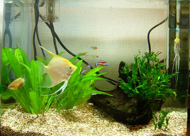 でも、一度追加しようと思うと何か追加したくなる。テトラは種類が違っても群れたりもするっていうし、別のテトラにしよう。ブルーテトラはいい感じだったが気性が激しいらしくグラミーの時みたいになってもいやだったので却下。ということで頭が赤くて尻尾に黒いアクセントのあるラミーノーズテトラに決めた。