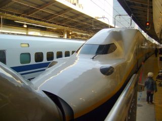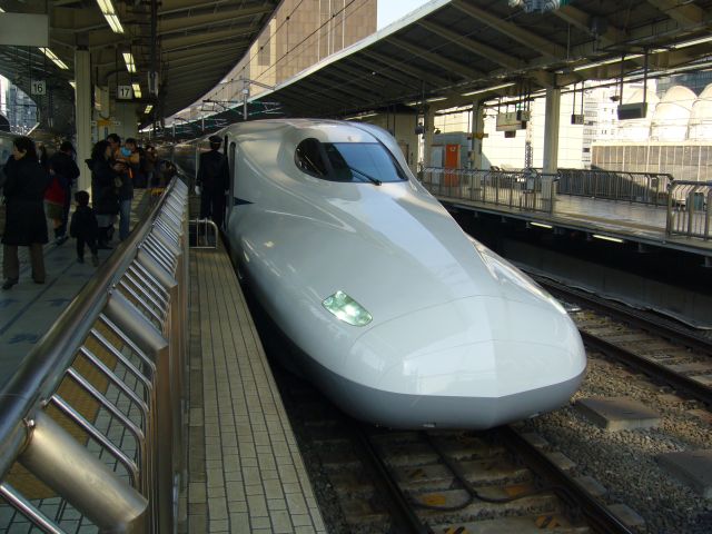 やはり東京駅に着くと待ち構えて写真をとっている親子連れと鉄チャンたちがいる。改めてN700系をみてみると700系のように丸みがないため多少戦闘的に見える。まぁ、500系ほどではないけど。