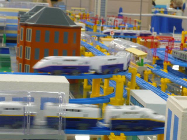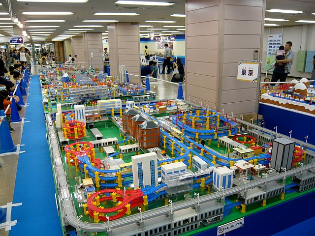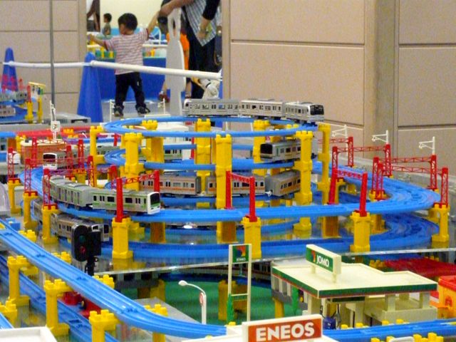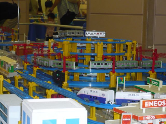 大きなプラレールのセットなどが沢山ある。一番大きいものは日本全国のセットである。北海道、東京、新宿、名古屋、大阪、九州だったと思う。それぞれの場所に出入りしている電車のみがいて、東京には東北新幹線と東海が両方いるし、新宿には小田急や京王がいる。北海道は何がいたのだったかは忘れてしまった。大きなものもあり、子供の人気を集めていた。