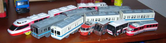最後になじみのある小田急コレクションである。プラレールは5000型、1000型、そしてロマンスカーHiSEと今は売っていないものしかない。チョロQはNSEとEXE、ガチャガチャのLSE、そしてBit Char-Gの小田急バスである。後はこれまた生産終了した多摩急行の千代田線のプラレールが欲しいところである。