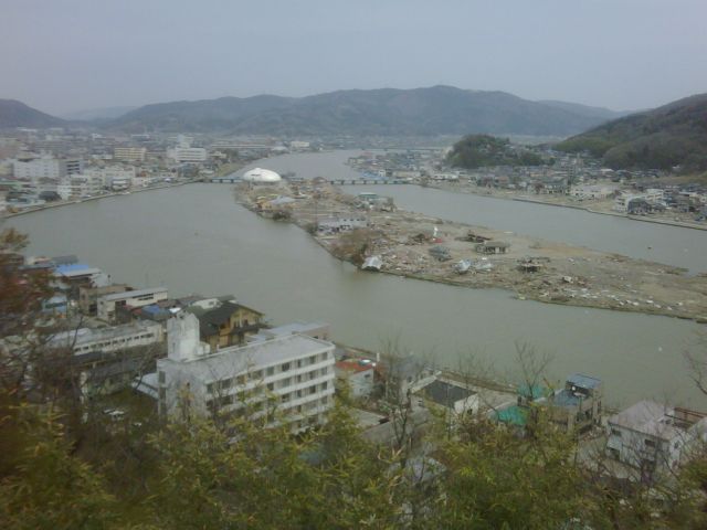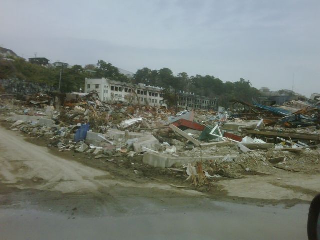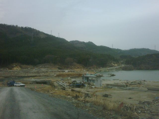 女川の方に行く途中の小さな港町などはリアス式海岸で集中的に波がきたために一切流されていて何も無いという状態になっていた。地盤沈下もあったようで港も半分水に浸かっている。