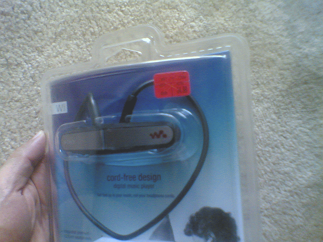 5月の中旬のある日。いつもと同様にプラプラ見ていたら変なイヤホン型のウォークマンに赤タグがついているではないか。フムフム、もともと$49.99だったものが$34.98!