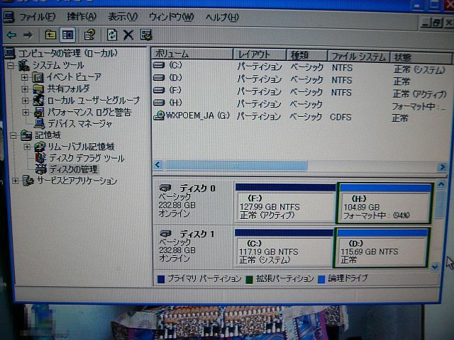 強引にFドライブをCドライブに変えちゃおうとも試みたがDisk管理ツールではできず、別のソフトが必要だったので最初からやり直した。パーティションもMBRを直すのが面倒そうなのでそのままC:130GB/D:120GBにしてしまった。