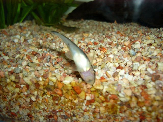 早速ガラス面や流木をパクパクやっている。頑張ってコケを食べておくれ。
