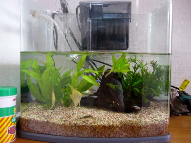 ちゃんと餌を食べるようになってくれれば元の水槽に移して、いじめっ子のグラミィをこちらにしばらく移してみようかとは思っているのだが。