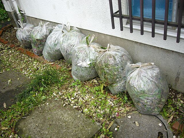 GWのむしった雑草の量。結構あるがまだまだ雑草だらけである。