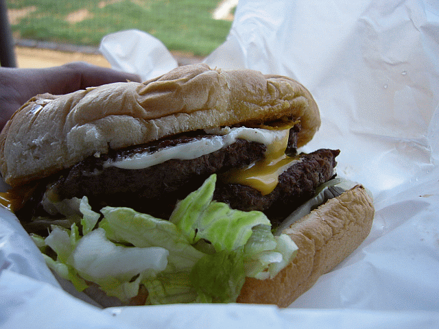 ここのダブルバーガー w/チーズが最高である。しかも自分で野菜などを入れるのが普通なのであるが店の人に作ってもらうと野菜が下に盛られている。肉も2枚だとバンズやその他とのバランスが絶妙である。肉のジューシーさもちょうどいい。ちなみに今はいないが創立者の名前がジョン・グリーン氏である。