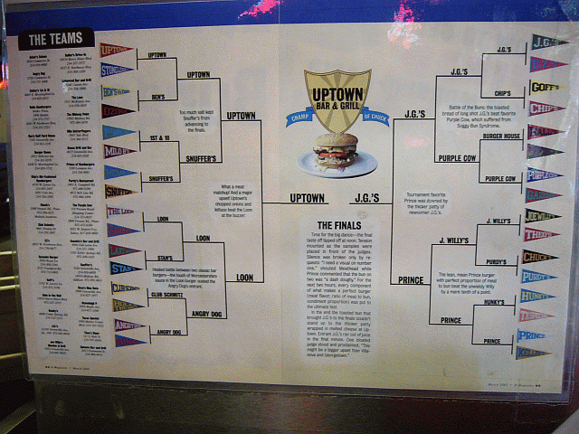 ダラスでのベストバーガーは何か?多数のバーガー屋があるがバーガーキングであるIY氏を含む私たちのなかではJG's Old Fashioned Hamburgersが一番である。Dマガジンの紙面対決では惜しくも2位になったがUptown Bar and Grillsのバーガーに一歩も引けをとらない。そちらも食べたしなかなかおいしかったが私たちの中ではJGsの方がおいしいと感じる。