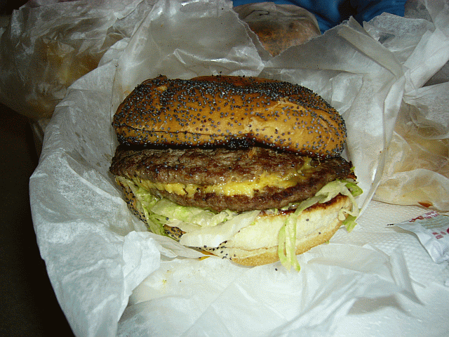これは普通のダブルワッパー w/チーズにハラペーニョが入っているので始めて食べたときは辛くて汗だくになってしまったが何回か食べているうちに慣れてしまってこれがないとパンチを感じなくなってしまうのである。残念ながらテキサスでしか売っていない(どうやらそうでもないらしい。。。)。