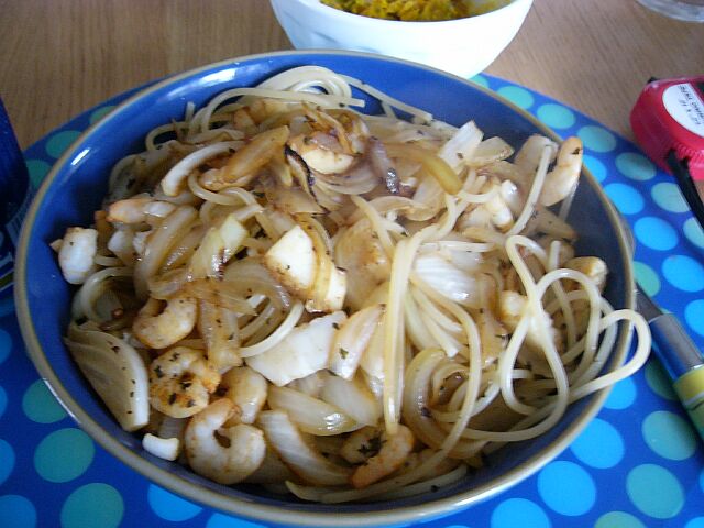 昼は実家で採れた玉葱をもらってきていたので冷凍庫にあったシーフードミックスと合わせてパスタを作ってみた。見た目はよろしくないが味はまぁまぁ。